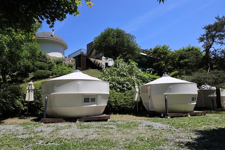 Welcome to Alpaca Stay, a glamping site operated by Alpaca World in Hongcheon, the only dedicated alpaca zoo in Korea. This unique place is nestled within a vast 11,000-pyeong forest, home to animals living in their natural state, making it the largest forest animal kingdom in the country. The glamping site is situated just below this animal kingdom. It is named Alpaca Stay, and it is located next to a valley at the back of a guide space, aptly named Alpaca Valley.