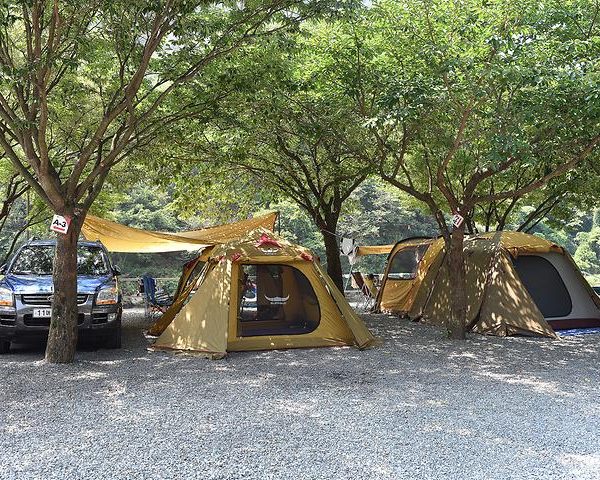 With over 40 crushed stone sites spacious enough for both tents and tarps, the Alps Campsite is generously designed for the discerning camper. Parking is conveniently available right in front of the site, sparing you the hassle of lugging heavy equipment. The campsite is adorned with mature zelkova and cherry blossom trees, providing ample shade and a lush, natural ambience that makes it the perfect summer camping spot.