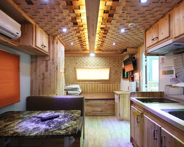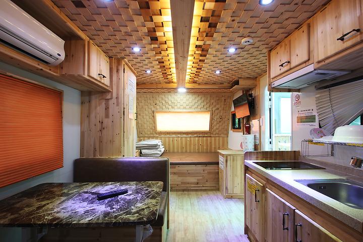 There are three types of caravans available, differing only in size but with identical interior facilities. Inside each caravan, you’ll find a bed, TV, cooking facilities, toilet, and shower. The exterior features an awning to block out sunlight or rain, and underneath it is a wooden deck set up for barbecuing. Trees planted throughout the regular camping sites provide cool shade. Since the camping site itself is located within the Biseulsan Natural Recreation Forest, there’s no need to venture far for other tourist attractions. Plus, numerous restaurants are within a 10-minute drive.