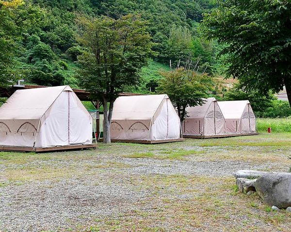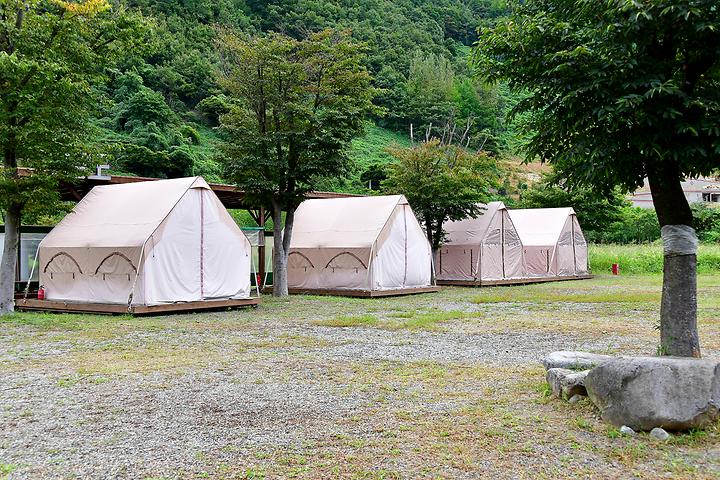 During the summer, there is a stream in front of the camping ground, providing a fun-filled place for children to play and even catch fish. There is also an indoor playground for children to enjoy on rainy days. Trampolines, divided by age group, are also available for safe play.