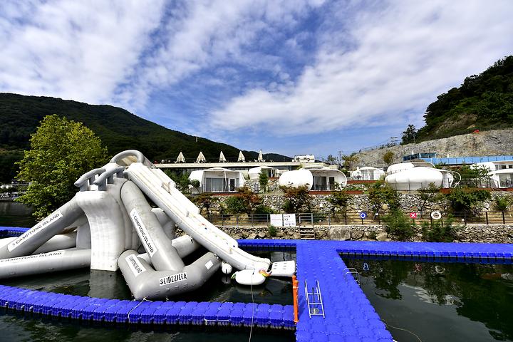 Nestled in the beautiful Cheongpyeong Lake, “Camp Tong Island” or 캠프통 아일랜드, is the largest water leisure resort in South Korea, offering a luxurious glamping experience.