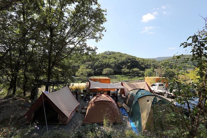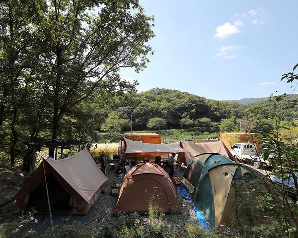 Surrounded by mountains and a flowing river, Cheonan OK Camping offers an intimate and serene atmosphere ideal for family camping. The site features four general campsites made of crushed stone, each measuring eight meters wide and nine meters long. With ample space between each site, campers are assured of a relaxed and peaceful environment.