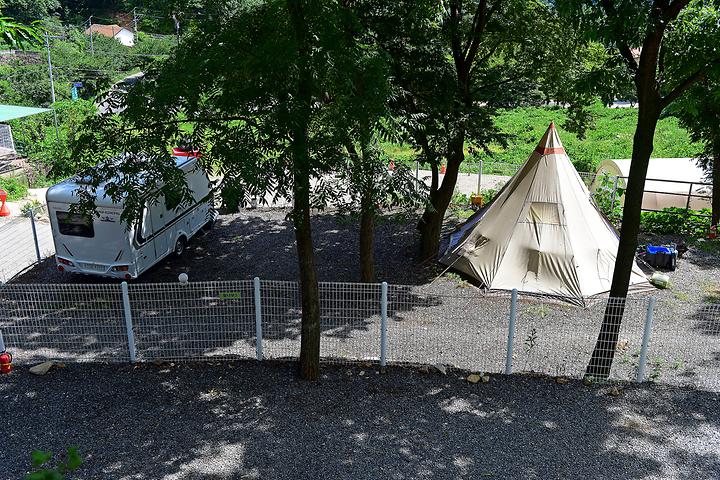 Chunriahn Camp Hill is characterized by its abundance of trees, creating natural shade that keeps the area cool. As a neatly organized camping site with modern facilities, it provides wide and comfortable sites. Even after setting up a large tent, there is enough space left for children to play. The campsite has an electric distribution box installed for electricity use and offers free Wi-Fi. The children’s play area, which consists of trampolines divided into two age groups, is a safe space for kids to play.