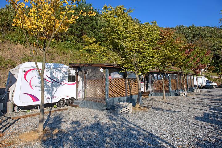 The campsite is composed of a general campsite with 20 faces and three caravans. Notably, the caravans are modern and equipped with a large bathtub inside. According to the reviews of visitors, the campground boasts excellent facilities earning it the trendy term ‘Hyuja Campground’. Immaculate restrooms, showers, and sinks are a given, with hot water readily available. The management office and convenience store sell various camping necessities, including beverages, ice cream, and firewood. There are also air bounce castles, playgrounds, a cinema, and a ping-pong table for children, allowing you to enjoy both culture and sports.