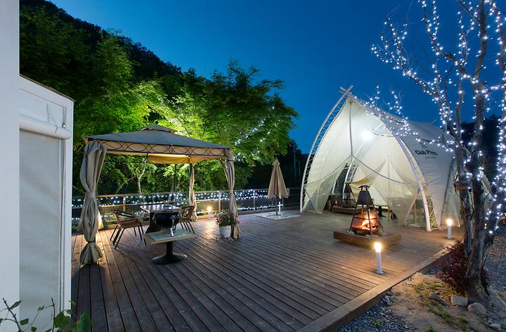 Club Primo is a luxurious camping spot situated in Seowon-myeon, Hoengseong-gun, Gangwon-do. Just a 20-minute drive from the Dongyang Pyeong IC on the Gwangju Wonju Expressway in the direction of Yangdong and Danseokri, you will arrive at this hidden paradise. Surrounded by a lush forest and a crystal-clear valley, Club Primo offers six different types of unique glamping accommodations.