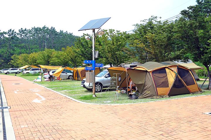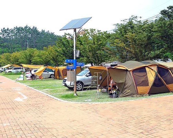 Direct parking is available right next to your tent, eliminating the hassle of transferring your belongings from afar. Power distribution boxes are installed, making electricity accessible. The clean toilets and shower rooms are well-equipped with hot water, ensuring no inconvenience during use. The excellent drainage system in the camping site ensures no worries even during rainy days. The camping site is first-come-first-served. The expansive park is great for children to run around freely, and the path to the walking trail is beautifully decorated.