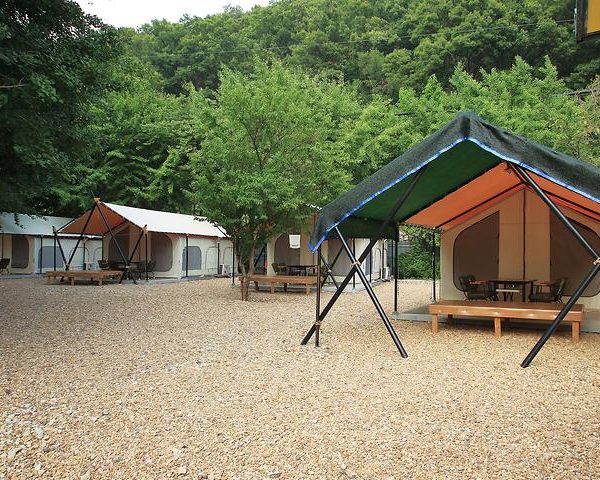 On arrival, the campsite reveals a beautiful glamping area and an auto camping site, all enveloped within a tranquil forest of ginkgo trees. This unique setting allows for enjoyable camping even during the hot summer months. The glamping site is equipped with nine rooms, each offering a bed, air conditioning, TV, refrigerator, cooking tools, and cooking utensils. Also, an exclusive deck with barbecue facilities is in place for an outdoor cooking experience. The auto camping site is 8m by 8m, made of strong gravel. It’s pet-friendly, allowing for companion dogs, with some restrictions on size and gender.