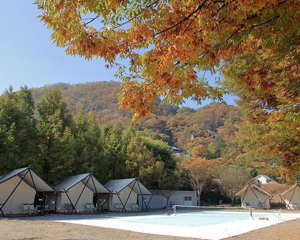 With a total of 18 glamping tents, six are specially designed for campers to enjoy with their pets. These pet-friendly glamping areas are kept separate to avoid discomfort for visitors who are not comfortable around pets. The pet glamping area is equipped with mesh on the outer deck and the interior offers pet cushions, potty pads, feeding bowls, food, and snacks. Moreover, there is a dedicated playground and swimming pool for pets.