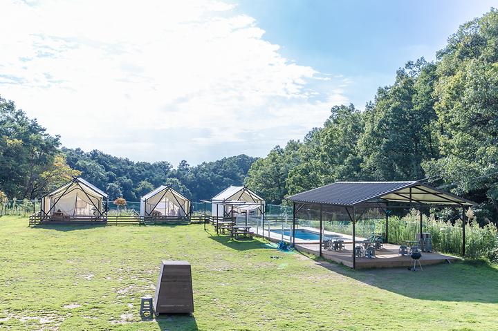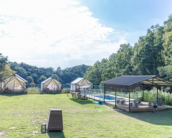 The camping ground is strategically situated between the Baekma Reservoir and Bogwang Mountain, akin to a fortress in the wild, enabling campers to fully immerse themselves in the beauty of nature. The site features 3 glamorous camping (glamping) units and 8 general campsites. The spacious grassy lawn houses a multitude of facilities tailored for your canine companions. A swimming pool and a small pond also provide the perfect space for campers and their pets to mingle and bond.