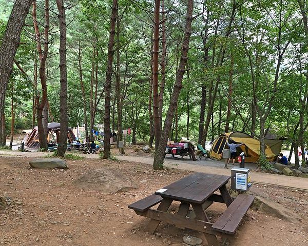 Despite being a National Park campsite, Nae Won Automobile Camping Site has the ambiance of a forest resort. Its forest sites are equipped with wooden tables, eliminating the need for visitors to bring their own. You can listen to the sound of the valley water flowing next to the site and enjoy the waterfall view through the trees while sitting on the deck. There are 32 regular camping sites, 5 caravan sites, 11 small deck sites, and 5 medium deck sites. Also, there is a separate parking lot within the campsite.