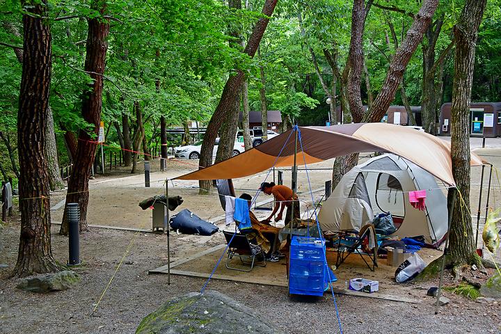 Right next to the campground flows a stream that’s chillingly refreshing to even dip your feet in. Children will be thoroughly entertained with catching fish and playing in the water. The campground’s close proximity to Haeinsa Temple in Hapcheon makes it an ideal spot for a two-in-one trip – camping and temple exploration.
