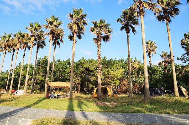 Located on the beautiful island of Jeju, the Geumneung Beach Campsite offers an exotic camping experience under palm trees. This campsite is seamlessly connected with the bustling and vibrant Hyeopjae Beach, but it exudes a more modest charm in comparison.