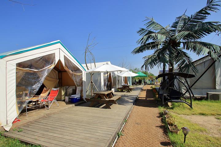 Experience an exotic atmosphere with a touch of nature at Daeboo Island Glamping, a unique camping site located in Ansan City, Gyeonggi Province.