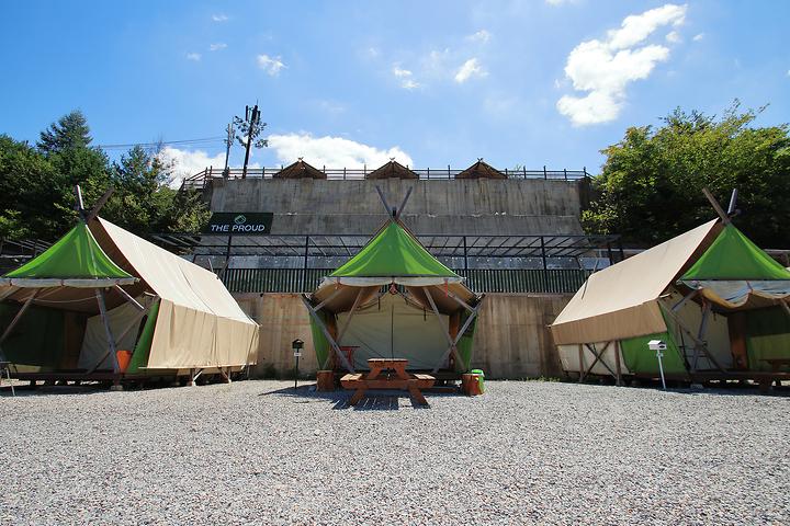 Experience a touch of luxury with glamping and caravanning at “The Proud Resort”. The resort is located in Baekun-myeon, Jecheon-si, Chungbuk. It’s about 26 kilometers away from the Jecheon City Hall, and you can get there by taking the Naeto Road, North Road, and Gullak Mountain Road in sequence. It takes about 30 minutes to get there.