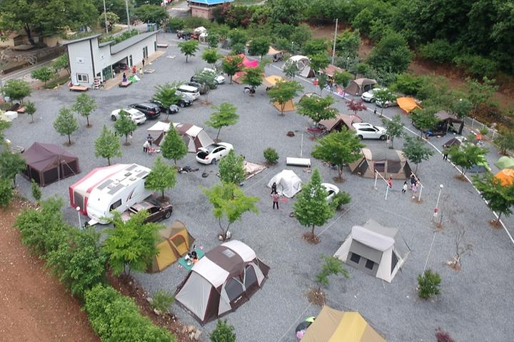 The journey to Hans Village from Danyang County Hall takes around 20 minutes by car, passing through Byeolgok 3-ro, Namhangang-ro, and Saebat-ro. Once you reach the destination, you’ll find 32 general camping sites paved with crushed stones. No matter which site you choose to stay at, you’ll find easy access to restrooms, showers, and water faucets.