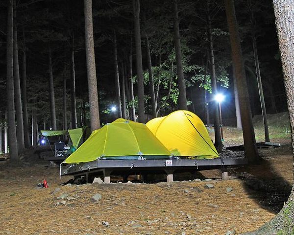 The camping site is positioned deep within the forest, beyond the Forest Culture Recreation Center, the grassy lawn, and the accommodation building. Here, 28 decks are tucked away amidst the dense deciduous pine forest. The site is well-equipped with hot water showers and washing stands. A small valley stream runs in front of the camping site, adding a refreshing touch and offering a delightful playground for children. Although crossing the valley to park and unload luggage can be a bit inconvenient, the tranquility and minimal artificial structures make this camping site highly popular.