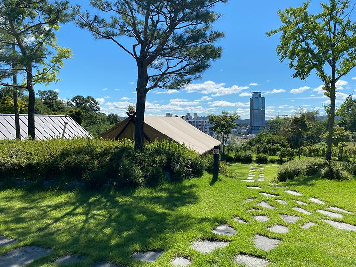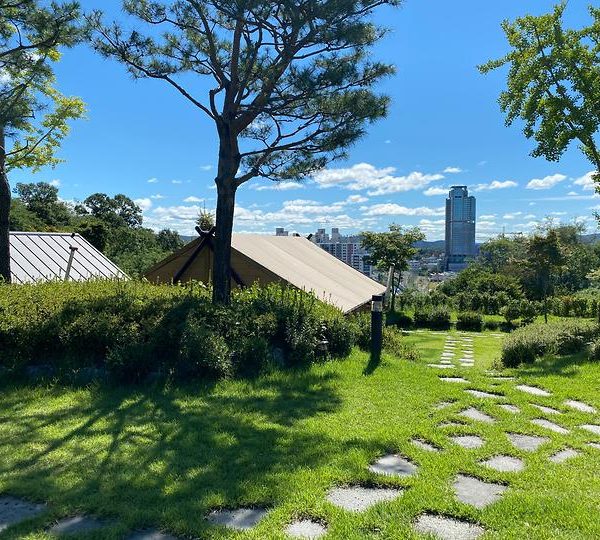 Stonehill Glamping, or 스톤힐 글램핑 as it’s locally known, is a beautiful spot that invites you into its well-kept garden, reminiscent of a private villa. This uniquely curated area combines nature and modern elements such as exposed concrete, creating a harmonious space for relaxation and adventure.