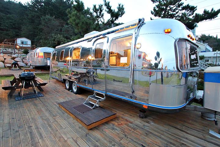 Strategically located near the well-known Hajeo Beach, one of Yeongdeok’s top tourist attractions, The Stream Caravan Campsite offers campers the comfort of two caravans and nine guesthouse rooms. The luxury of the campsite is evident both inside and outside the caravans, which are designed with an Airstream theme.