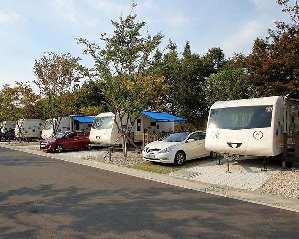 The camping site offers 19 sites on a hill and 86 sites by the river, all equipped with electricity and fire facilities. The caravans are available in small and medium sizes, including a special caravan that sports a favorite kitty character, delighting children and the young at heart. Most sites boast an unobstructed view of the Hantan River, adding to the charm of the place.