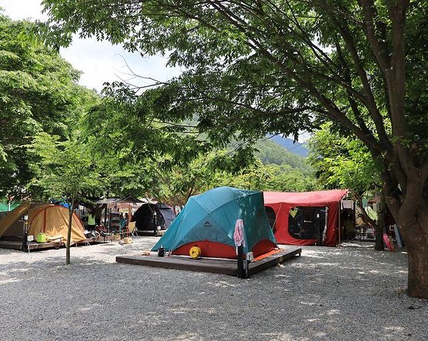 The campsite is located on the path leading to Bupheung Temple. As you ascend along the valley, you will cross a wide bridge. On the other side, follow the mountain path a bit further to your left and you will find the Nature Together Pension Campsite. The scenic beauty of Mt. Saja unfolds majestically behind the campsite facilities. The site is clean and fully equipped with various amenities as it was built recently. It features 13 deck sites, 6 crushed stone sites, 7 valley crushed stone sites, and a pension.