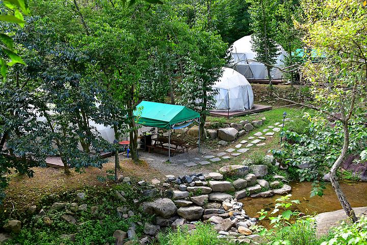 Wake up in the morning and rent a bicycle for two to explore the vicinity. There’s a stream right next to the camping site where you can enjoy water activities and fishing. Hammocks are individually installed for a stress-relieving nap. The camping site also offers free Wi-Fi. And if you ever run out of anything, there’s a cooperative shop about 6km away from the camping site. The shower rooms and wash stands provide hot water 24/7, and the toilets are consistently kept clean and sanitary.