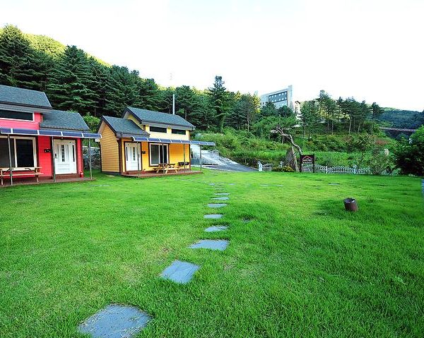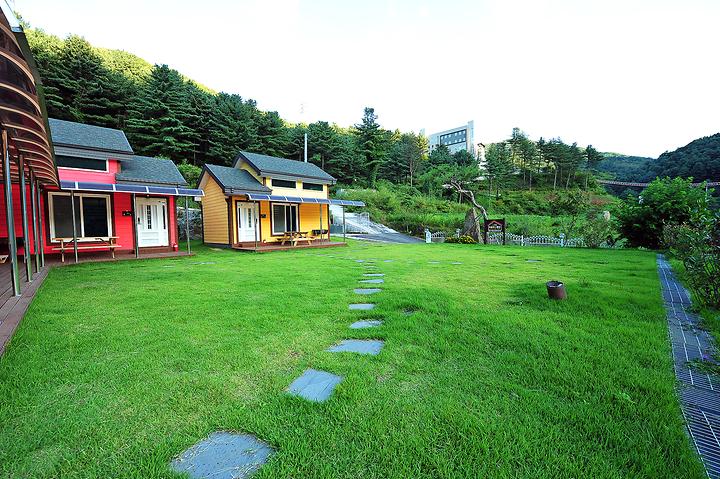 The Healing Forest Campsite is a unique blend of a pension house and a camping site. Just a 5-minute distance away, you can find the Amazing Park Suspension Bridge, leading directly to the Healing Forest. Though small, the camping site is covered in grass, providing a perfect playground for children. A stream flows next to the camp, making it an ideal spot for swimming and exploring the creek during the hot summer days. Families or group campers may also enjoy their stay in the adorable pastel-toned wooden duplex pension. The pension, built with cypress and eco-friendly materials, exudes a natural cypress aroma for a therapeutic experience.