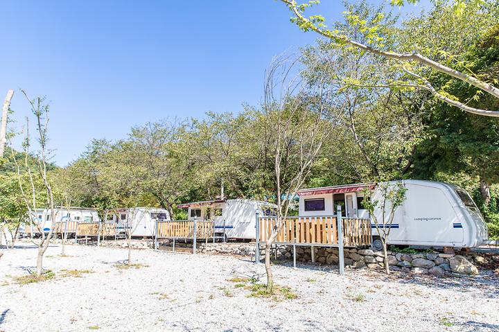 The caravans are fully equipped with facilities that would ensure a comfortable stay. The external private decks of the caravans have BBQ facilities set up under an awning. The site is open all year round, and small pets are allowed. Reservations can be made online in real time, by phone, or on-site.