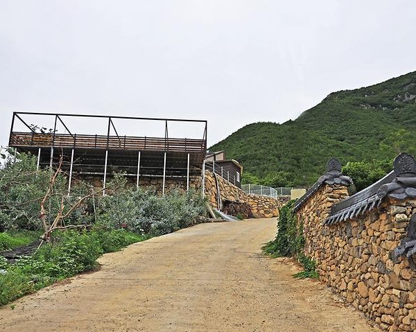 Following the road that leads to the Yeongnam Alps Ice Valley Cable Car, you’ll pass Nammyeong Junction and continue past Sannaenammyeong Elementary School. From there, follow the Hayangji Road into the mountain village. As you ascend, you’ll pass the White Welfare Hall and upon making a left turn, an elegant Korean traditional house (Hanok) appears beneath the majestic mountain peaks. This is the Ice Valley Hanok Pension. Its courtyard houses a swimming pool, seemingly suspended among the clouds, harmoniously blending with the surrounding scenery.