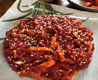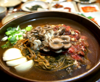 Jangsubabsang prides itself on serving dishes made from Jangsu Hanwoo, a type of Korean native cattle famed for lean meat and tender texture that has been raised over 500 meters above sea level. They also serve winter nourishment foods prepared with dried radish greens. The restaurant’s slogan, 장수를 위한 건강밥상 (pronounced ‘Jang-soo-reul Wi-han Geon-gang-bab-sang’), reinforces their dedication to serving healthy meals that promote longevity.