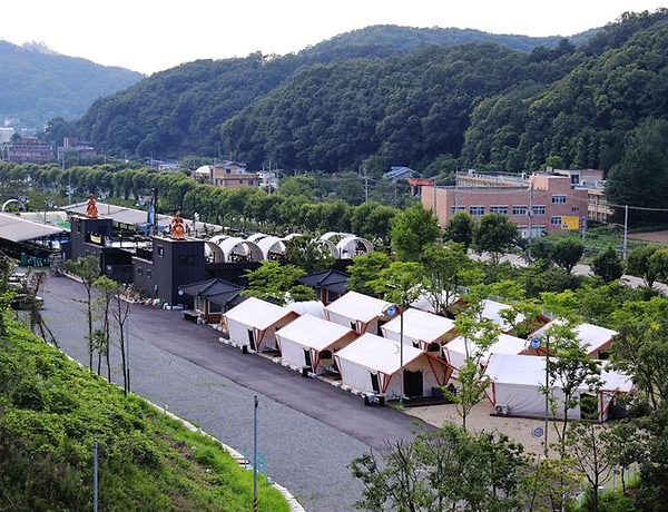 Set in the beautiful Tapdong Valley of Wangbang Mountain, Jaws Glamping is an impressive leisure and glamping site that is sure to capture the hearts of campers and Korean culture enthusiasts alike. Located just across the Tapdong Village Hall under the Tamdol Tunnel, this site offers a unique blend of modern luxury and traditional Korean aesthetics.