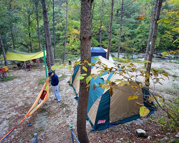 Take a relaxing retreat at the Jueun Natural Recreation Forest. Located alongside the pristine and beautiful Wolseonggyegok valley in the mountainous landscapes of Gyeongnam Geochang, this camping site is perfect for families with its shallow waters, ideal for children to play in.