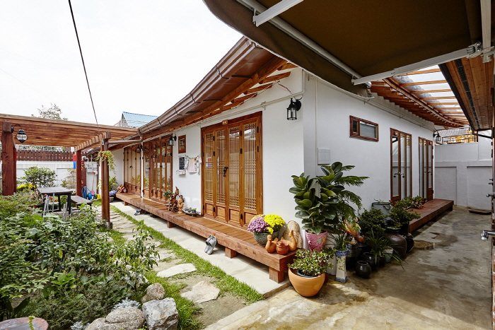 Experience the timeless elegance of traditional Hanok architecture at Gaeunchae guesthouse,…