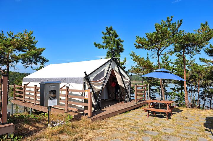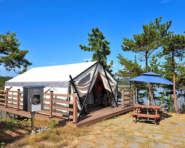 In the summer, there is a children’s water play area for a cool and fun summer experience. As cars are not allowed within the campground, children can freely run and play. On the beach, there is a deck for romantic strolls with a view of the sea. Although there is no concession stand, charcoal, firewood, butane gas, and grills are sold.
