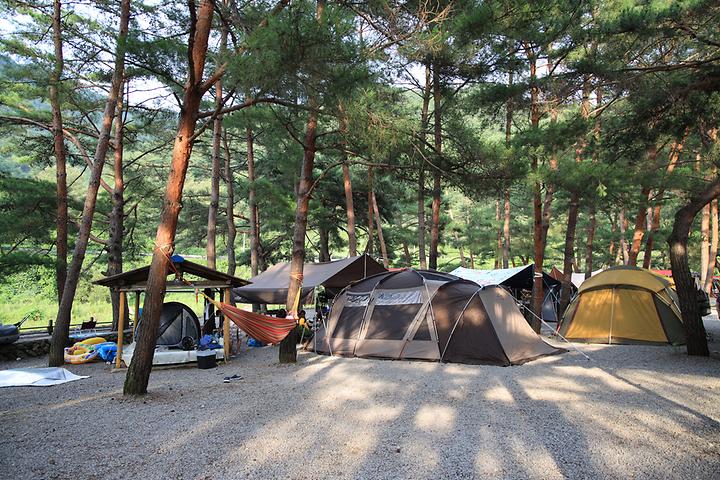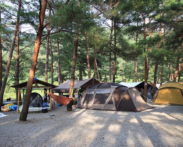 Secluded in the upper reaches of the Yeongwol Naeri Valley, the Solbat Camping Site offers a unique camping experience amidst a remarkable pine grove and a clean, quiet stream.