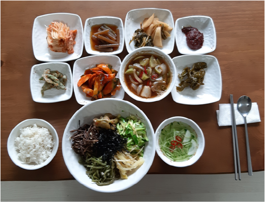 The signature dish of the restaurant is the Mountain Vegetable Bibimbap, crafted with vegetables grown directly by the restaurant and the mountain greens from Jirisan. This locally-inspired dish showcases the vitality of spring and the life energy of Jirisan. It’s no wonder that it has been designated as a “Hamyang Health 100-year Food” by the Hamyang-gun local government.