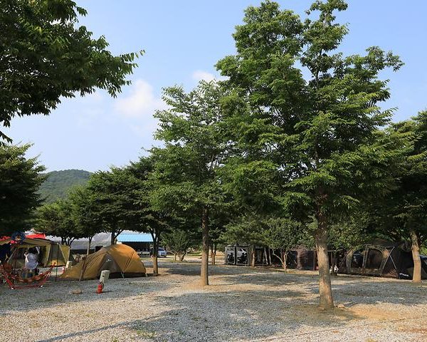 The campground is set in a picturesque rural village beside the Dalcheon River, offering a plethora of natural experiences. It features 60 general camping sites made of crushed stones, each measuring 10m in width and 12m in length. These sites are well shaded by trees, making them comfortable even during the hot summer months. Each site is equipped with a fireplace and has access to electricity, making it suitable for personal trailers and caravans. Do note that there’s an additional fee of 5,000 won for these facilities.