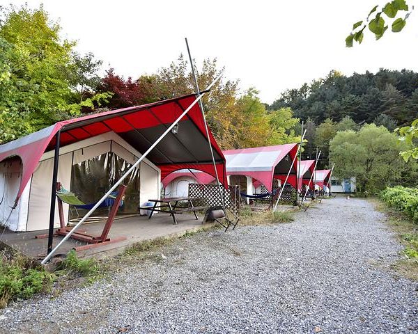 The camping ground is also home to two of Korea’s native dogs, a Jindo and a Sapsal, adding to the authentic Korean experience. Each campsite measures a generous 8m x 12m, ensuring ample space for a comfortable camping experience.