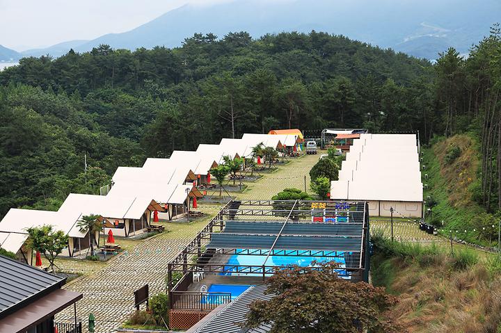 The Ocean Forest Glamping site is the largest glamping site in Gyeongsangnam-do, occupying over 30,000 square meters of land. It boasts 30 glamping units and 10 pension houses. Each unit is well-equipped with individual showers and toilets, comfortable beds with warm bedding, Wifi and TV, and a clean kitchen for preparing fresh meals. This means you can enjoy all the aspects of glamping without the need for any separate camping tools.