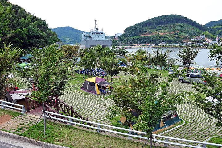 The Okgye Auto Camping Ground is located at the entrance of the Chilcheonryang Naval Battle Park, with the Okgye Beach right next to it. This camping site boasts over 30 spots, which are available on a first-come, first-served basis. The Okgye Beach, right next to the camping ground, has a sandy surface but as you dig deeper, you’ll find a layer of clay filled with clams and cockles, providing an excellent natural learning experience for kids.