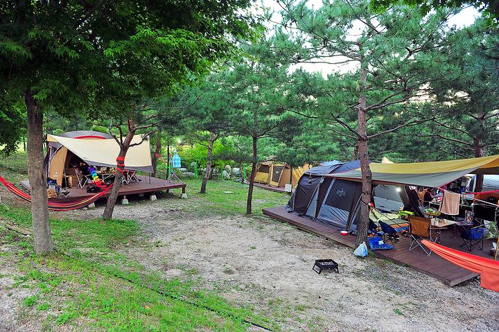 The Pine Farm Campground, or 소나무농원 캠핑장 in Korean, is a tranquil camping site nestled among dwarf pine trees. This unique camping spot, located within the Garaegol Farm, offers a well-maintained campsite amidst a forest blanketed by the cool shade of lush pine trees. The campground, exclusively made up of immaculate deck sites, ensures a refreshing and pleasant camping experience under the shade provided by these beautiful pines.
