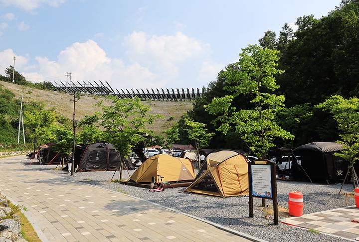 The Pet Healing Moonlight Zoo Campground, located within a zoo designed for children’s animal experiences, is an ideal spot for families who love the outdoors and animals. It’s situated near the main town of South Yeongwol County. After passing Yeondang Elementary School and crossing the Pyeongchang River in front of the Nam-myeon office, you’ll find this charming zoo, christened Dabangigol Reservoir, tucked away within a small reservoir.