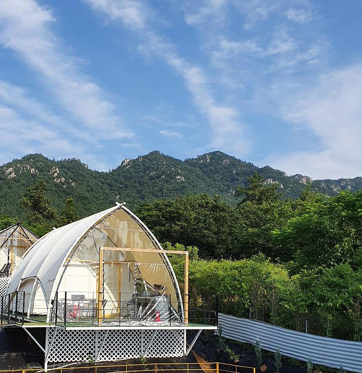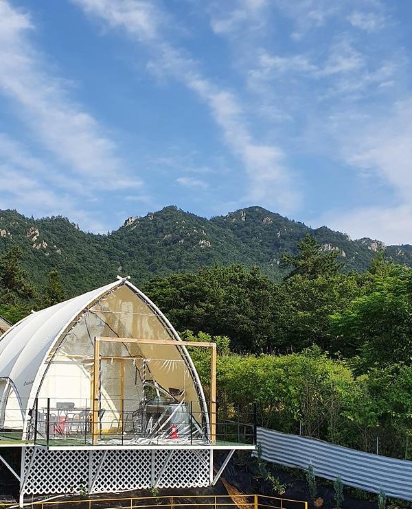 Situated within the beautiful Rims Garden in Gangjin, Rims Glamping is a camping site that combines the glamour of luxury accommodation with the great outdoors. This is a place where you can heal and unwind while surrounded by stunning gardens.