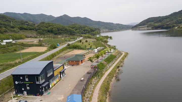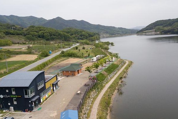 The camping site overlooks the Daewon Reservoir, a popular fishing spot that is bustling with activity throughout the year. This picturesque backdrop makes for a great photo zone, adding to the charm of the location. The camping site comprises of five general campsites made of decks and three caravans. Each caravan is well equipped with a bed, bedding, sofa, TV, refrigerator, air conditioner, dishes, cooking tools, sink, bathroom, and shower, making it a comfortable home away from home. The campground also features an on-site restaurant and cafe, further enhancing its appeal.
