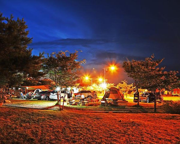 With the lush pine forest surrounding Songjiho, the proud bamboo island standing in front of the sea, and the clean, wide sandy beach that the campground’s private beach has, it’s a camping experience like no other. Just across the road from the campground is Songjiho Lake. Close by, there are numerous large and small harbors where you can enjoy sea fishing and fresh raw fish, making it an excellent location for a combined trip.