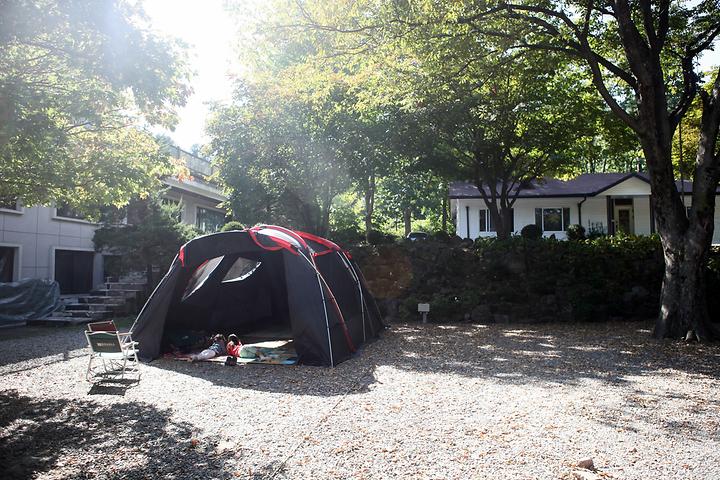 The Water Mountain Academy Auto Camping Site, located in Sudong-myeon, Namyangju, Gyeonggi-do, is a camping site surrounded by lush forests and a pristine gorge. The name “Academy” comes from its past use as a corporate training facility. The site is not only filled with trees, but they are also very large, allowing campers to enjoy the refreshing shade.