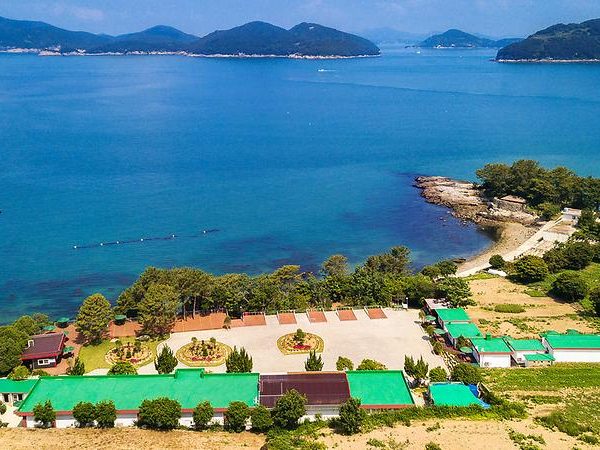 Time and Space (시공간), a picturesque beachfront camping site, is situated on the western shoreline of Geumodo Island, known for its scenic coastal trails. Right next to Songgo Pier, it offers a breathtaking view of Gaedo and Oeseo Islands across the sea. This unique camping site is a remodeled deserted school that now operates as both a pension and a camping ground. The classrooms have been transformed into pensions, while camping decks are laid out at the edge of the playing field overlooking the sea. The endless expanse of the sea creates a truly mesmerizing illusion, offering visitors a one-of-a-kind romantic experience.