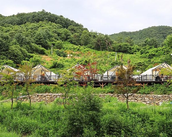 Meet Tutu Glamping, the quintessential kids-friendly full villa and glamping spot run by Onar Camping. Nestled within the Dumili Pension complex, this idyllic spot offers a spectacular view of Daegumsan Mountain across a gently flowing stream.