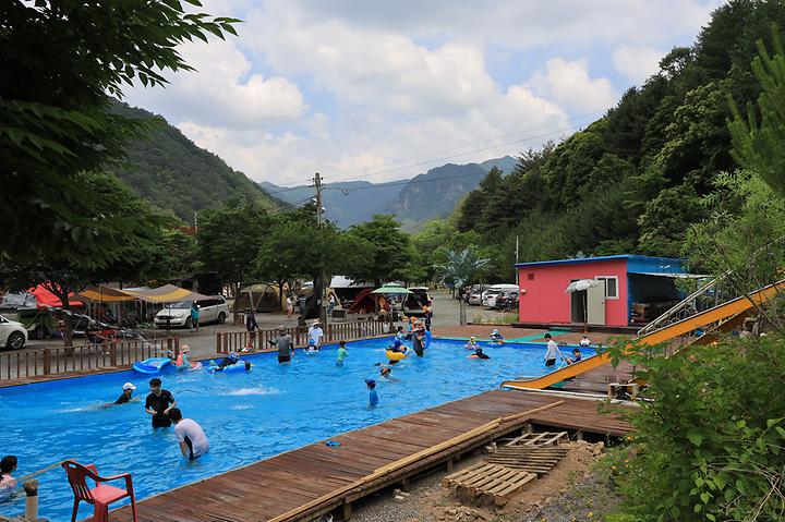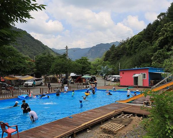 A short stroll down the trail connected to the campsite will lead you to a beautiful valley where layers of smooth, broad rocks are piled up. Welcome to Camp is also famous for its various events. Activities such as releasing fish into the swimming pool for a bare-hand fishing experience and making traditional Korean rice cakes are regularly conducted. However, the relatively young and small trees in the area mean that shade is somewhat limited.