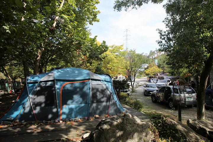 Yangju Songcheon Campground can accommodate about 50 campsites. The camping sites are divided into deck sites and crushed stone sites. The entrance of the camp is the deck site, while the inner side of the store is the crushed stone site. From either side, you can easily get down to the valley to enjoy water activities.